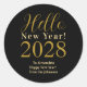 Pegatina Redonda Nochevieja personalizada Año Nuevo Oro Negro