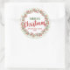 Pegatina Redonda Nombre de familia Merry Christmas Flower Wreath