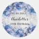 Pegatina Redonda Nombre de florines azules de plata de cumpleaños