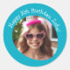 Pegatina Redonda Nombre de foto personalizado y cumpleaños feliz de