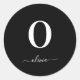 Pegatina Redonda Nombre De Guión Monograma Personalizado Blanco Y N
