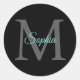 Pegatina Redonda Nombre de guión verde azulado, gran monograma gris