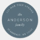 La calcomanía clásica redonda con dirección de retorno y apellido de la familia Pizarra Azul presenta el apellido y la dirección de su familia en blanco sobre un color pizarra azul. Consulte los artículos de boda coincidentes aquí https://www.zazzle.com/collections/sage_layered_geometric_blue_slate_wedding-119021046856867346