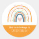 Pegatina Redonda Nombre de los niños arcoiris blancos y naranjas