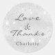 Pegatina Redonda Nombre de monograma con brillo plateado gracias