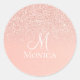 Pegatina redonda clásica con nombre de monograma con destellos de purpurina rosa moderna. Pegatina redonda con nombre de monograma con destellos de purpurina rosa elegante.