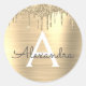 Pegatina Redonda Nombre de monograma de metal cepillado con brillo