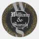 Pegatina Redonda nombre de monograma personalizado dorado negro gri