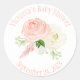Pegatina elegante de bebé niña en acuarela floral rosa y melocotón con fecha.
