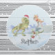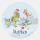 Pegatina Redonda Nombre de Raptor Tyrannosaur de Navidad de Dinosau
