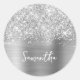 Personalizar el guión moderno de estilo manuscrito para crear tus propios sellos para sobres redondos para su evento especial. Añadir un primer monograma para crear una combinación inicial de nombre. Girly finge un purpurina gris plateado y el arte digital de Relieve metalizado metalizado cepillado (se imprimirá como una foto).