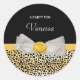 Pegatinas de estampado de chita amarillo dorado de moda con un lujoso arco blanco adornado con perlas de bonito y una cinta roseta en el centro. A cualquier muchacha que ama el amarillo y el negro le encantaría que se le añadiera su nombre a esta moda y diseño de huellas animales con estilo. Imagen plana impresa, NO cinta real.