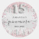 Pegatina Redonda Nombre del purpurina rosa plateado Quinceanera