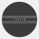Pegatina Redonda Nombre editable y bandas geométricas | Blanco y ne