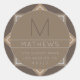 Pegatina Redonda Nombre geométrico moderno y monograma | Beige