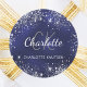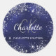 Pegatina Redonda Nombre monograma con polvo de purpurina plateada a