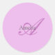 Pegatina Redonda Nombre Monograma Letra inicial Orquídea & Lilac