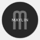 Pegatina Redonda Nombre Monogramado de aspecto moderno | Blanco gri