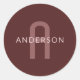 Pegatina Redonda Nombre Monogramado de aspecto moderno | Maroon Red