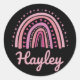 Pegatina Redonda Nombre mujer graciosa personalizada Arcoiris rosad