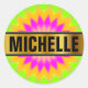 Pegatina Redonda Nombre + Patrón de Flor Vibrante Desenfocado