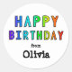 Pegatina Redonda Nombre personalizado Arcoiris Feliz cumpleaños