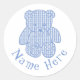 Pegatina Redonda Nombre personalizado Azul pálido Pastel Gingham Te