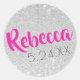 Pegatina Redonda Nombre personalizado Bat Mitzvah Silver Purpurina
