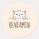 Pegatina Redonda Nombre personalizado Beige de gato blanco enojado