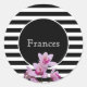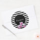 Pegatina Redonda Nombre personalizado con rayas blancas y negras y