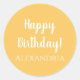 Pegatina Redonda Nombre personalizado Cumpleaños Amarillo Feliz Cum