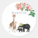 Pegatina Redonda Nombre personalizado de elefante cutáneo y jirafa