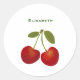 Pegatina Redonda Nombre personalizado de fruta de cerezas rojas