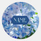 Pegatina Redonda Nombre personalizado de Hydrangeas azules