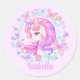 Pegatina Redonda Nombre personalizado de la mariposa de unicornio f