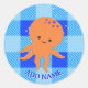 Un lindo pulpo personalizado naranja. Patrón de manchas azules en el fondo. Pegatinas de animales bebés. Editar el nombre al personalizar. Una idea de regalo para los niños.