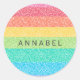 Pegatina Redonda Nombre personalizado de las franjas arcoiris de Pu