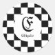 Pegatina redondo clásico del club de ajedrez, portapapeles. Muchos de nosotros tenemos recuerdos infantiles de jugar ajedrez con padres y abuelos, probablemente lo tengan como un juego familiar, este diseño de Pegatina Redondo Clásico está inspirado en el ajedrez. El diseño es una plantilla Elegante en blanco y negro, puedes añadir tu propio nombre y inicial. Por favor, siéntase libre de enviarme un mensaje para comentar sobre el diseño o para solicitar peticiones especiales.