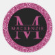 Pegatina de Sello para sobres personalizado de frambuesa profunda o magenta rosa con un nombre impreso monograma inicial y personalizado en medio de un purpurina rosa y un círculo negro. El diseño se coordina con la suite de invitaciones Mitzvah del Purpurina Pink Caliente del Diseñador Zazzle de uva de papel.