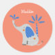 Pegatina Redonda Nombre personalizado Elefante lindo con palma azul