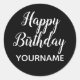Pegatinas felices de cumpleaños con un NOMBRE PERSONALIZADO - Negro y Blanco. Puede editar el diseño y cambiar el color de fondo a cualquier color que desee.