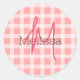 Pegatina Redonda Nombre personalizado inicial tartán rosa rosa negr