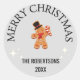 Pegatina Redonda Nombre personalizado Merry Christmas gingbread man