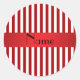 Pegatina Redonda Nombre personalizado rayas rojas y blancas