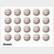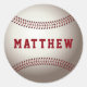 Pegatina redondo con un diseño de impresión de todo tipo de deportes de béisbol y una impresión de nombres personalizable de color rojo.