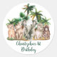 Pegatina Redonda Nombre personalizado Safari Animales Palm Trees