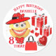 Pegatina Redonda Nombre personalizado y Emoji sonriente con regalos