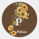 Pegatina Redonda Nombre personalizado y girasoles cortos iniciales