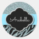Pegatina Redonda Nombre plateado negro azul de moda con estampado d