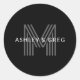 Pegatina Redonda Nombre Retro Moderno Editable Monograma Negro y Gr